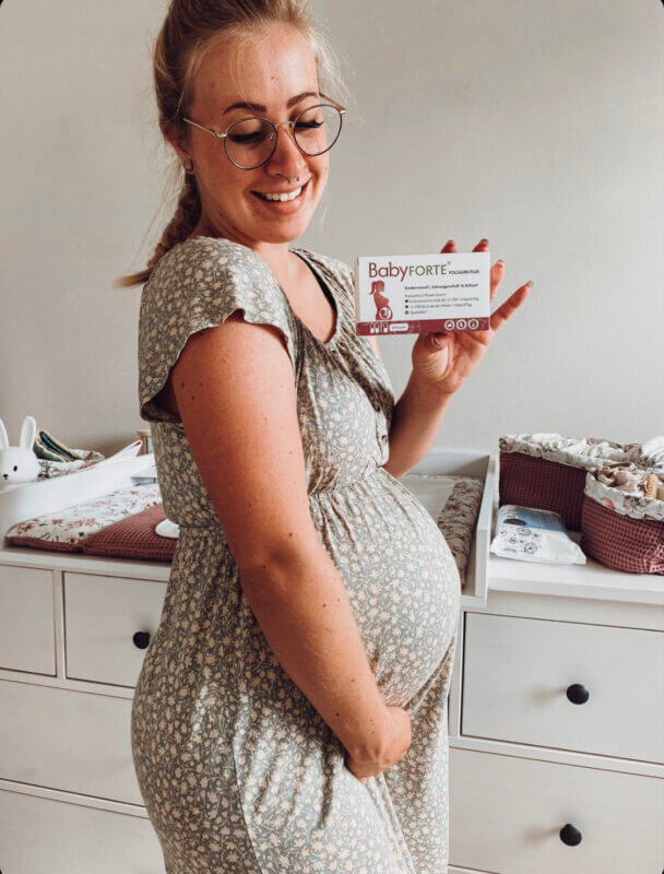 Patricia setzt in Ihrer Schwangerschaft auf eine gesunde, ausgewogene Ernährung und ergänzt diese mit hochwertigen Schwangerschaftsvitaminen. BabyFORTE® FolsäurePlus enthält neben Folsäure viele weitere wichtige Nährstoffe für Mutter und Kind.