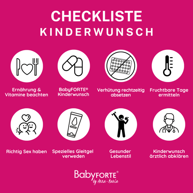 Achte auf auf gesunde, ausgewogene Ernährung und beginne frühzeitig mit der Einnahme von Schwangerschaftsvitaminen. Mit einigen Hilfsmitteln kannst Du Deine fruchtbaren Tage ermitteln. Regelmäßiger Sport sowie ein guter Schlaf sind ebenfalls zu empfehlen. Alkohol und Zigaretten solltest Du eher meiden.