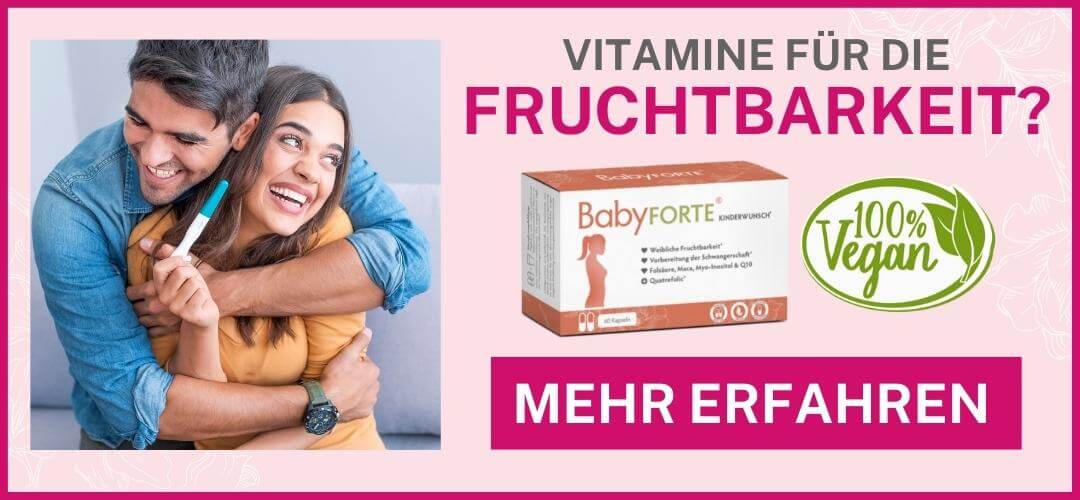 Starte noch heute mit der Einnahme passender Kinderwunschvitamine, die Du den ganzen Zyklus über einnehmen kannst. Die umfassende Formel bereitet Dich optimal auf die Schwangerschaft vor.